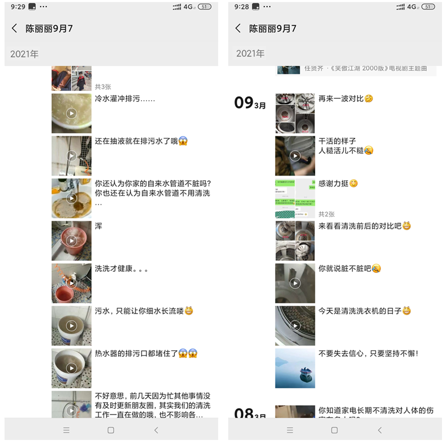 之后麗姐還接到了小區的清洗單子,除此之后麗姐還表示她現在基本上天天都有單子,還有一些事別人預定的。說到怎么一下就能接這么多單,麗姐表示用服務和態度說話是重點,當然專一也是非常關鍵的,因為麗姐想把這件事做好,所以在麗姐給客戶清洗的過程中客戶也能感受到麗姐的態度和專業,久而久之就會積累越來越多的好評,就招來了越來越多的客戶。