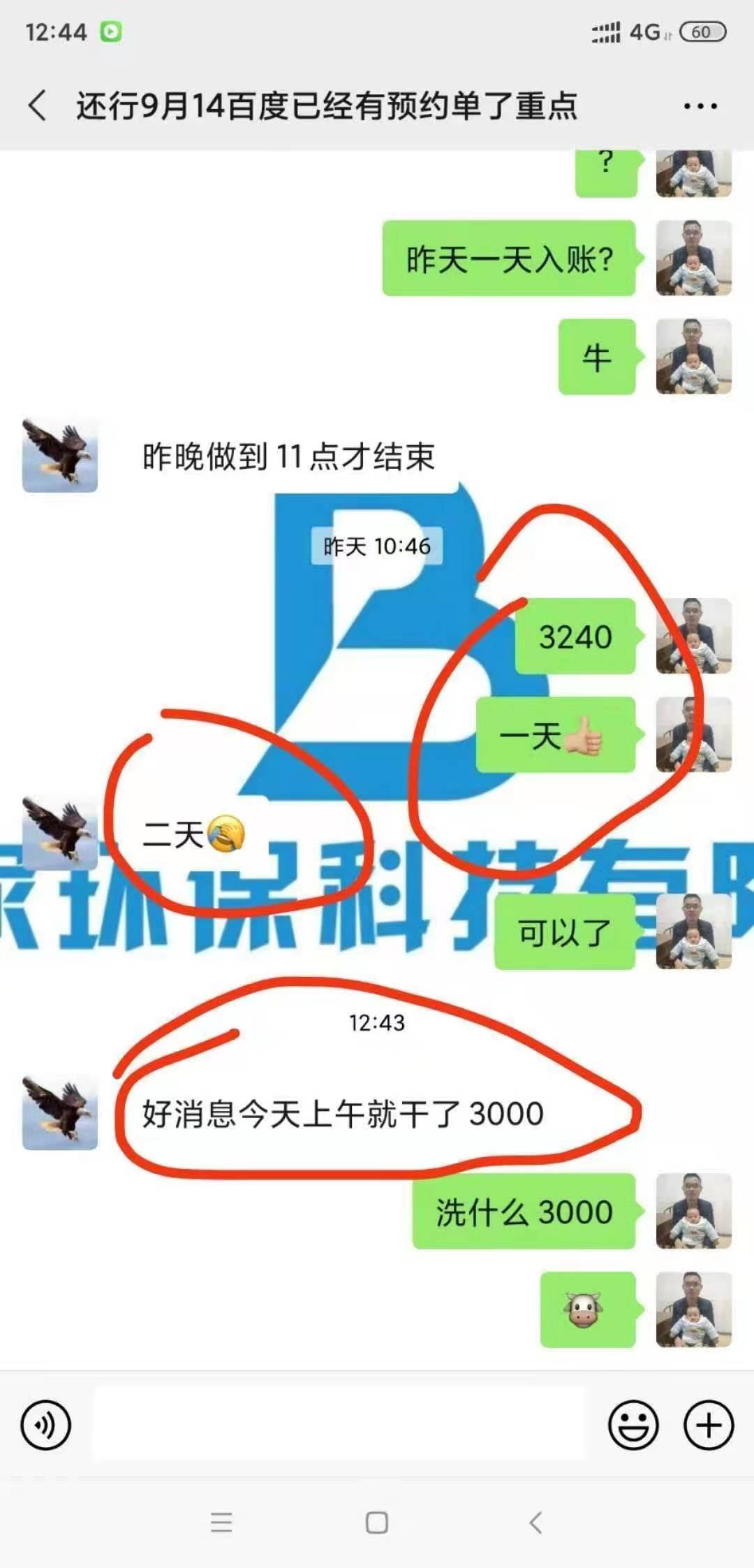 這是這幾天相總反饋的一些訂單收入情況,其實相總能有現在的成績和他的努力是分不開的,因為相總對待每一個清洗客戶都是非常熱情和負責的,在清洗的過程中也是非常認真的;因此朋友圈的客戶都比較信任和認可相總,所以也愿意為相總轉介紹新的清洗客戶,相總的資源也因此越來越多。