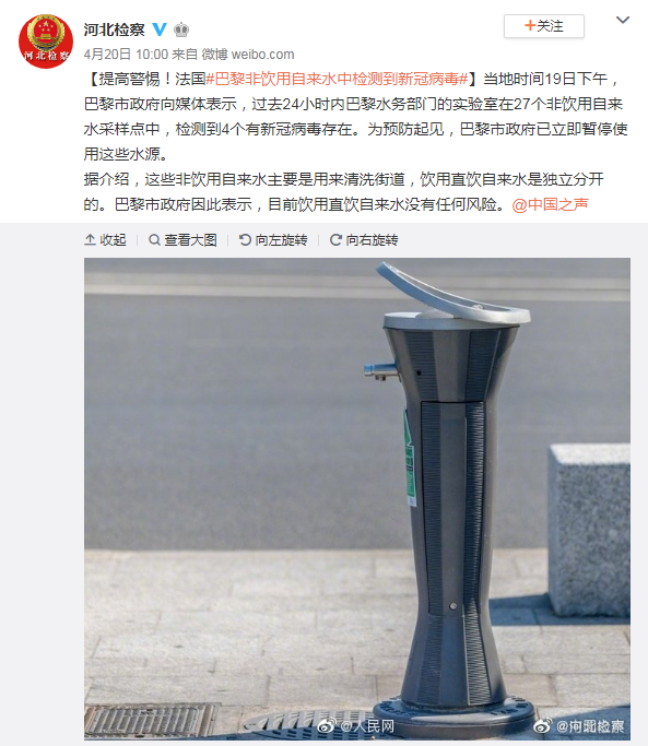 近日,國外疫情迸發現已達到了全新的高度,全球新冠病感染人數現已達到了230萬例,而且一直沒有得到任何的有效醫治。面臨如此扎手的世界性難題,就連專家們都束手無策。而壞消息都是接踵而來,讓人意想不到的事情發生了。法國巴黎在自來水中檢測到了新式冠狀病毒,這將意味著新冠病毒將以無形之手伸向世界每一個旮旯。